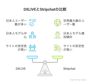 DXLIVEとStripchatは海外ライブチャットの中でも知名度が高いサイトです。